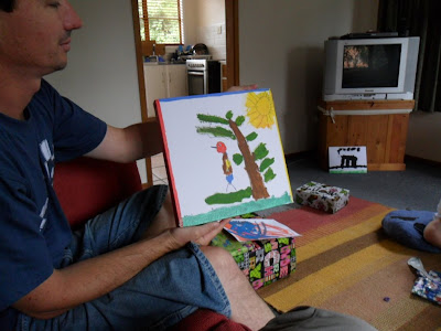 First image: I painted a Watty Piper illustration on Lucan's pillowcase. Shane and Savannah got into it as well, and we painted pictures that suited each person, which was really cool. Making stuff created the best Christmas.