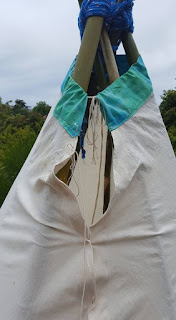 Note: In the end as it got smaller I realised it's far easier to throw over and sew cloth onto the poles - like the First Nations people in Canada did with their skins... And was a bit too tender a matter to talk about until now.